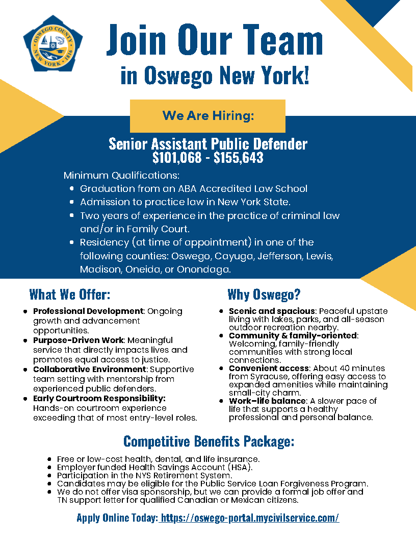 Oswego County Public Defender's Office Posted: 2026-03-19